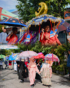 Rombongan pawai berkeliling di lingkungan sekitar sekolah sembari melantunkan selawat nabi. Aksi ini tidak hanya menjadi ajang kreativitas, tetapi juga bentuk syiar Islam yang santun kepada warga sekitar. “Payung ini simbol bahwa agama adalah pelindung kita, dan hiasannya adalah indahnya akhlak yang ingin kita tunjukkan,” tutur Ustad Imam, selaku koordinator kegiatan.