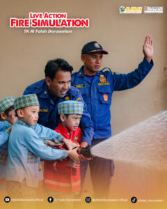 TK Al Falah Darussalam menggelar kegiatan edukatif bertajuk Live Action Fire Simulation pada Kamis, 22 Januari 2026. Kegiatan ini bertujuan mengenalkan konsep api, baik manfaat maupun bahayanya, kepada anak-anak usia dini melalui pengalaman langsung yang aman dan menyenangkan. Seluruh siswa mengikuti kegiatan dengan antusias didampingi oleh guru dan petugas pemadam kebakaran (Damkar).